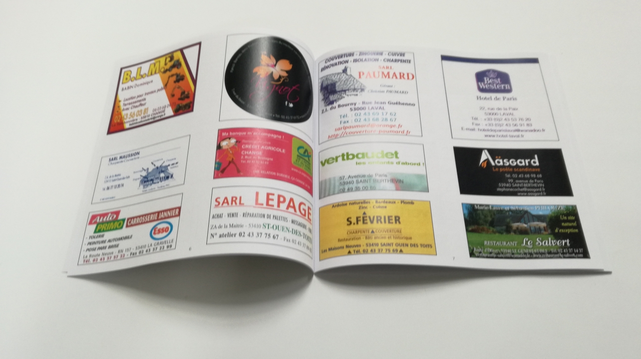 Actualités L'entreprise Nos clients Nos compétences Préparez votre fichierNos réalisations 02 43 53 15 97 CONTACT Brochure / Brochure Couverture Pages intérieures Pages Intérieures Programme courses Brochure 28 pages avec piqures métales. Autres réalisations du secteur Brochure Brochure SEPAL Carte Traiteur Brochure SONNET Traiteur Book photos Notice explicative Brochure 8 pages Brochure CLEP 2018-2019
